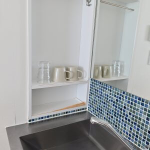 冷暖空調、小茶几、免治馬桶、乾濕分離衛浴、恆溫熱水控板、室內晾衣桿(附烘乾功能),二樓附共用廚房可調理。